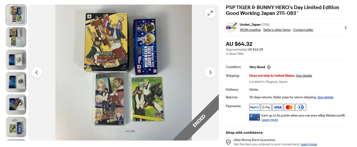 ウルベイ販売実績:自社商品PSP TIGER & BUNNY HERO's Day Limited Edition Good Working Japan 2111-083 ' 64.32AUD(オーストラリアドル)