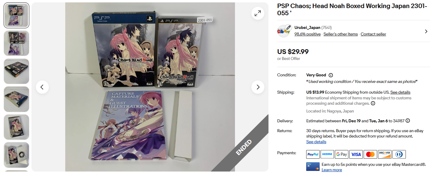 ウルベイ販売実績:自社商品PSP Chaos; Head Noah Boxed Working Japan 2301-055 ' 29.99USD(米ドル)
