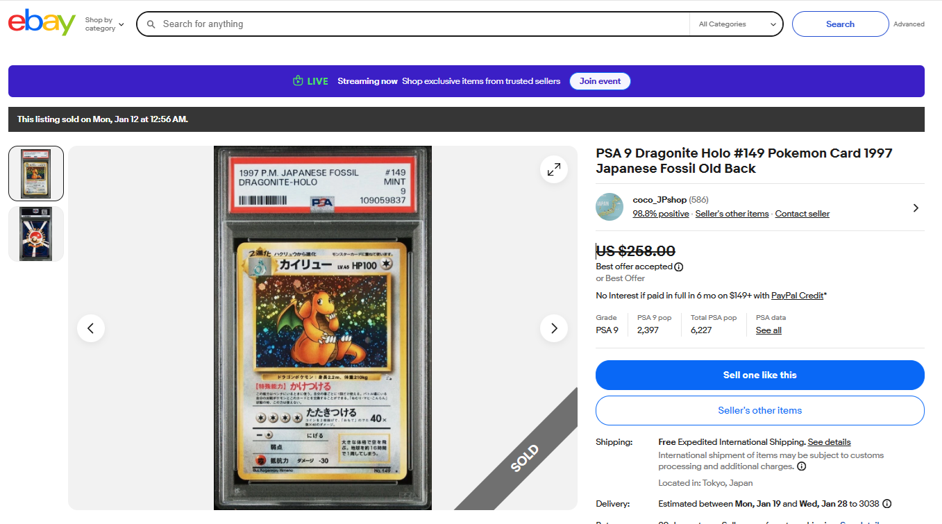 ebayで売れている商品 24-U0201 PSA 10 リザードン ex SAR 201/165 sv2a ポケモンカード 151 ジャパニーズポケモンカード 2023 300ドル ebayで売れてます