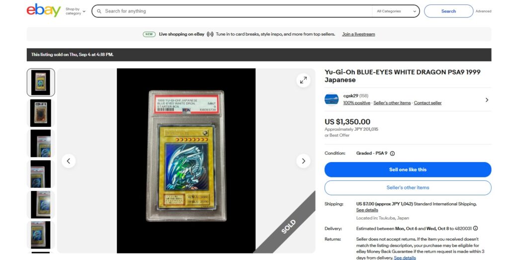 本日はこちらのポケモンカード商品の紹介です。 ebayではこんな「トレカ」商品についても高値で取引されております! ●商品名 Yu-Gi-Oh BLUE-EYES WHITE DRAGON PSA9 199...