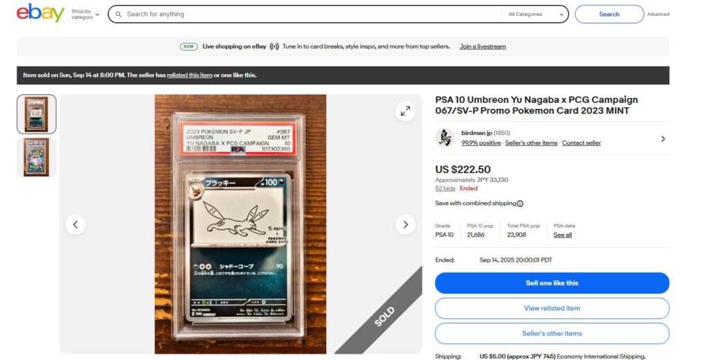 本日はこちらのポケモンカード商品の紹介です。 ebayではこんな「トレカ」商品についても高値で取引されております! ●商品名 PSA 10 Umbreon Yu Nagaba x PCG Campaign ...