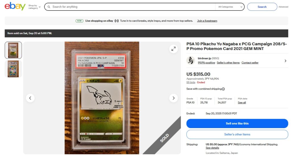 本日はこちらのポケモンカード商品の紹介です。 ebayではこんな「トレカ」商品についても高値で取引されております! ●商品名 PSA 10 Pikachu Yu Nagaba x PCG Campaign ...