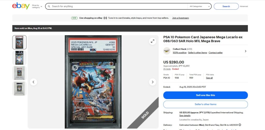 本日はこちらのポケモンカード商品の紹介です。 ebayではこんな「トレカ」商品についても高値で取引されております! ●商品名 PSA 10 Pokemon Card Japanese Mega Lucari...