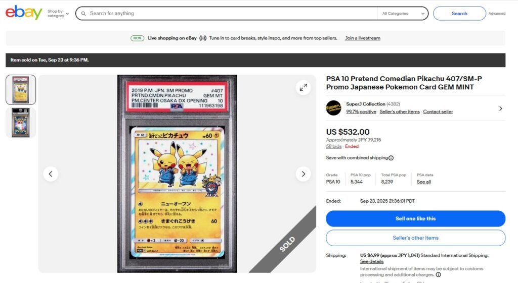 本日はこちらのポケモンカード商品の紹介です。 ebayではこんな「トレカ」商品についても高値で取引されております! ●商品名 PSA 10 Pretend Comedian Pikachu 407/SM-P...
