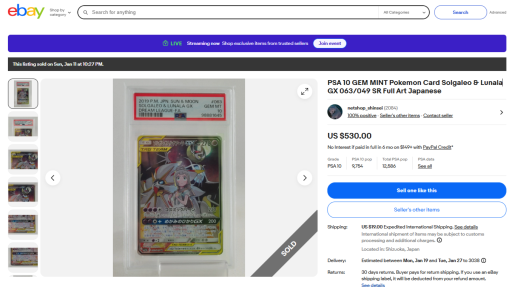 本日はこちらのポケモンカード商品の紹介です。 ebayではこんな「トレカ」商品についても高値で取引されております! ●商品名 PSA 10 GEM MINT Pokemon Card Solgaleo &a...