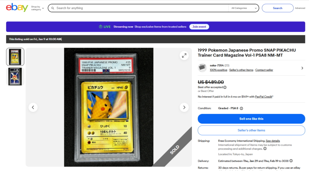 本日はこちらのポケモンカード商品の紹介です。 ebayではこんな「トレカ」商品についても高値で取引されております! ●商品名 1999 Pokemon Japanese Promo SNAP PIKACHU...