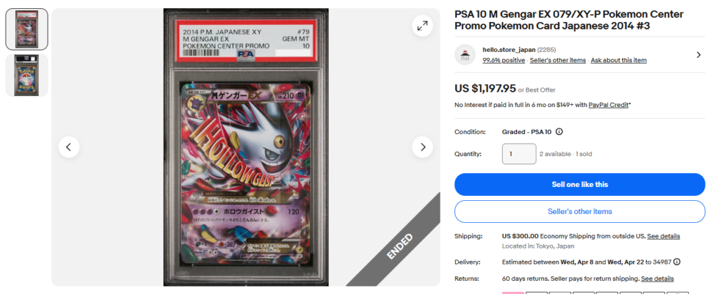 本日はこちらのポケモンカード商品の紹介です。 ebayではこんな「トレカ」商品についても高値で取引されております! ●商品名 PSA 10 M Gengar EX 079/XY-P Pokemon Cent...