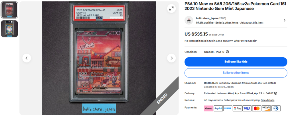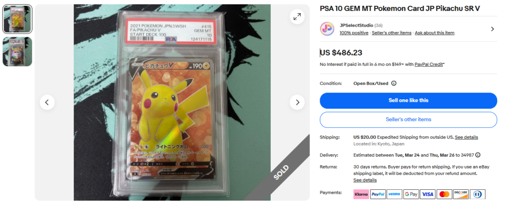 本日はこちらのポケモンカード商品の紹介です。 ebayではこんな「トレカ」商品についても高値で取引されております! ●商品名 PSA 10 GEM MT Pokemon Card JP Pikachu SR...
