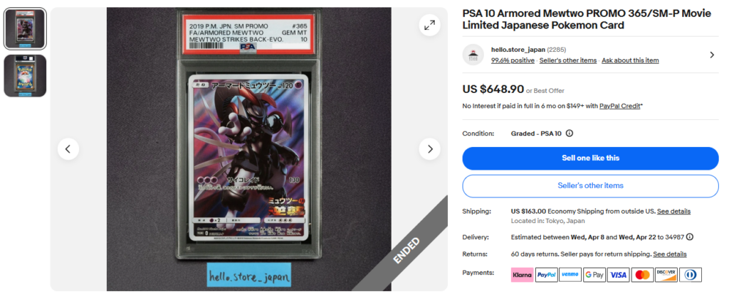 本日はこちらのポケモンカード商品の紹介です。 ebayではこんな「トレカ」商品についても高値で取引されております! ●商品名 PSA 10 Armored Mewtwo PROMO 365/SM-P Mov...