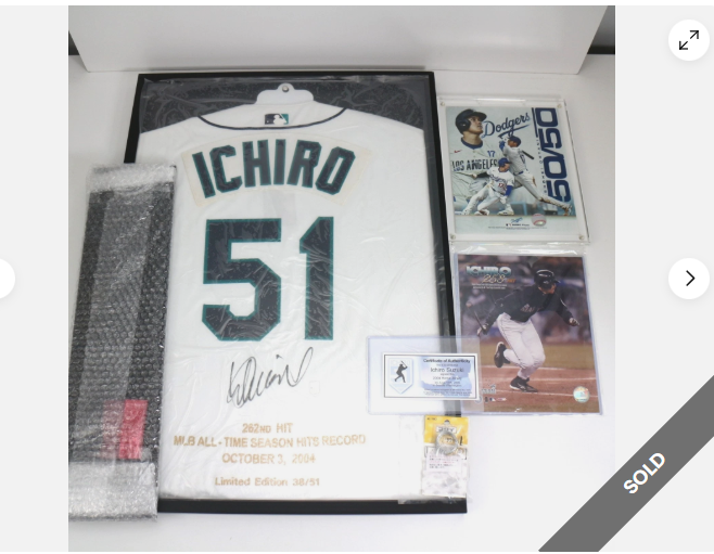 代行実績 ウルベイ販売実績:Limited to 51 copies, Ichiro's autographed jersey - 2004: 262 hits, new MLB reco 235.5USD(米ドル)