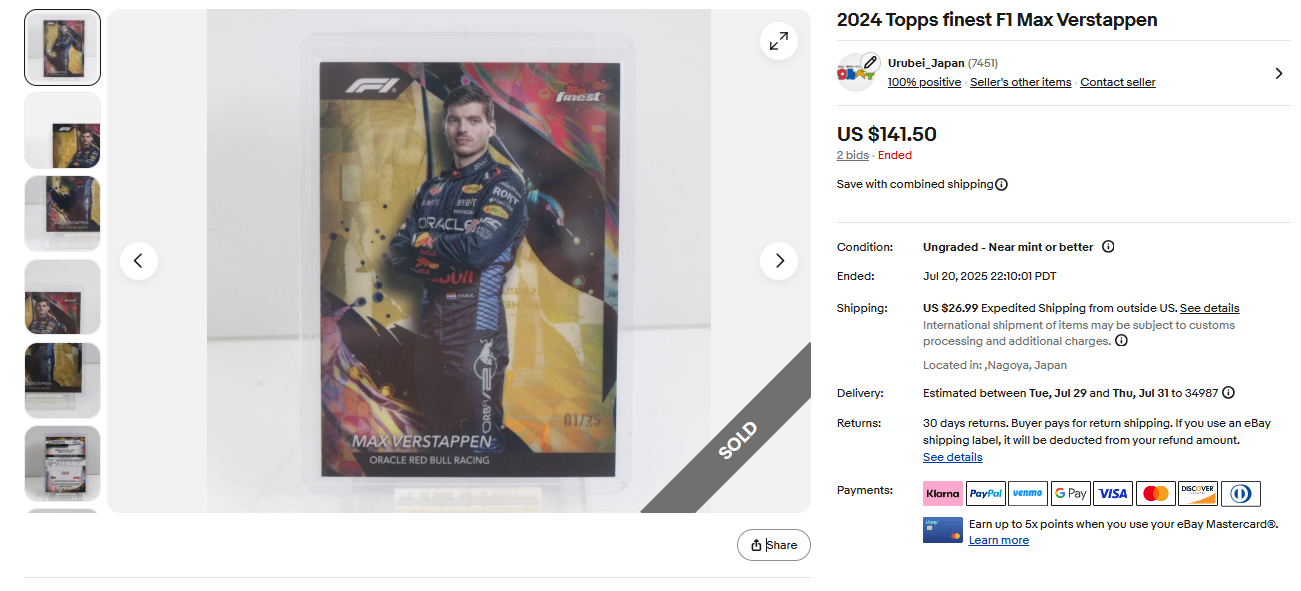ウルベイ販売実績:愛知県S様2024 Topps finest F1 Max Verstappen 141.5USD(米ドル)