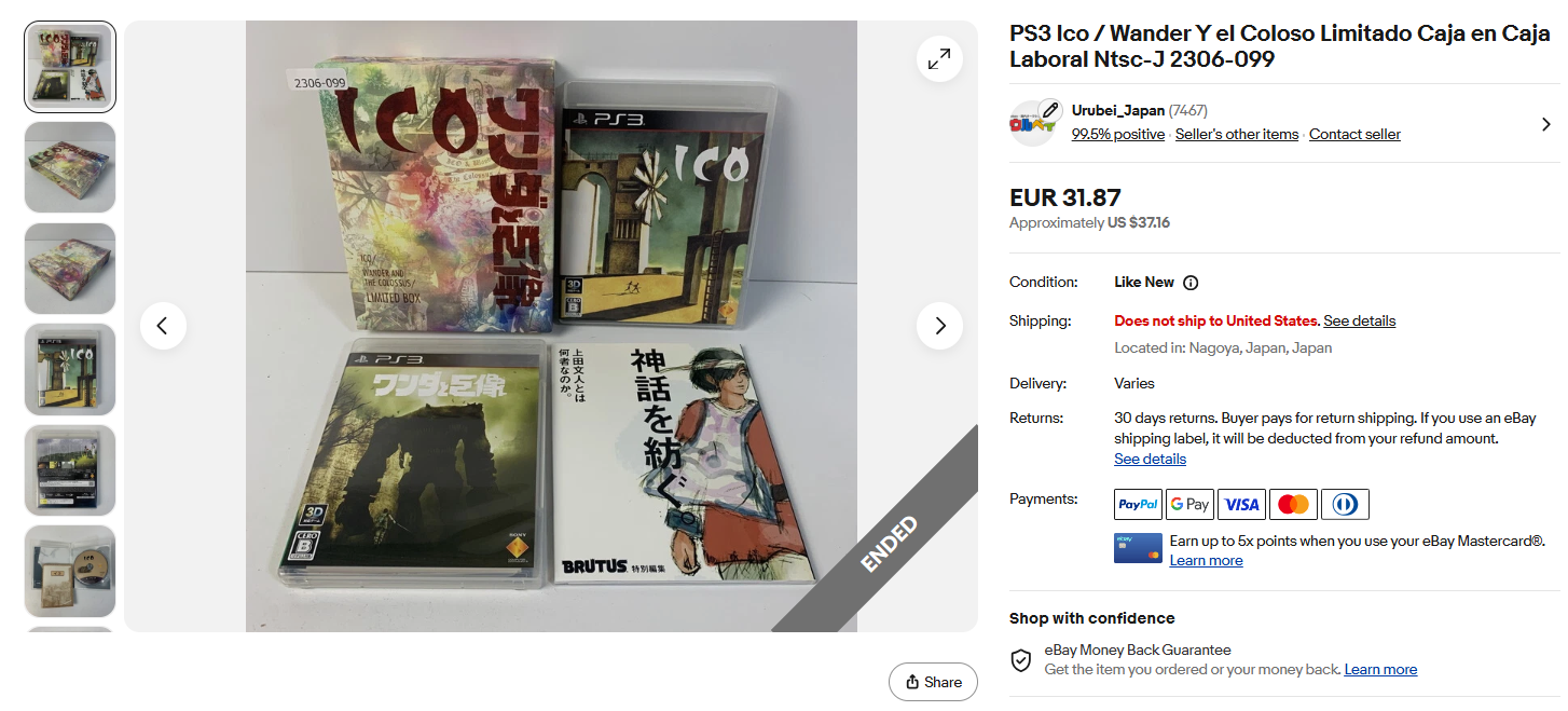 ウルベイ販売実績:自社商品PS3 Ico / Wander Y el Coloso Limitado Caja en Caja Laboral Ntsc-J 2306-099 31.87EUR(ユーロ)