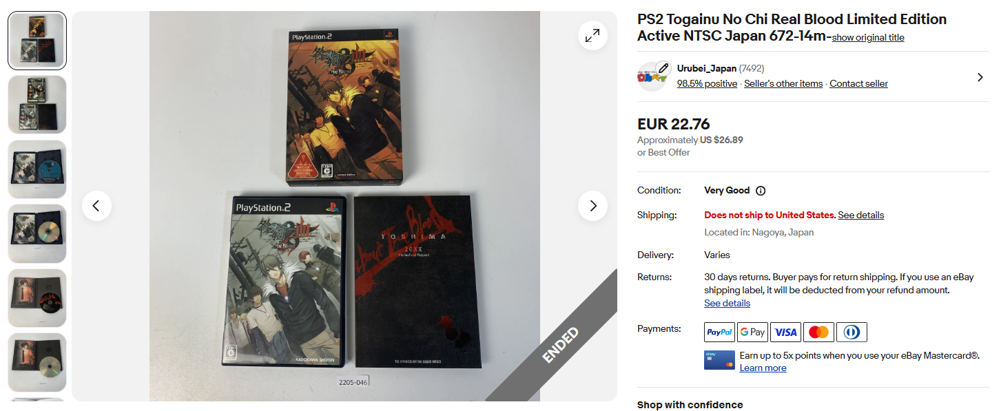 ウルベイ販売実績:自社商品PS2 Togainu No Chi Echt Blut Limitierte Auflage Aktiv Ntsc Japan 672-14m 22.76EUR(ユーロ)
