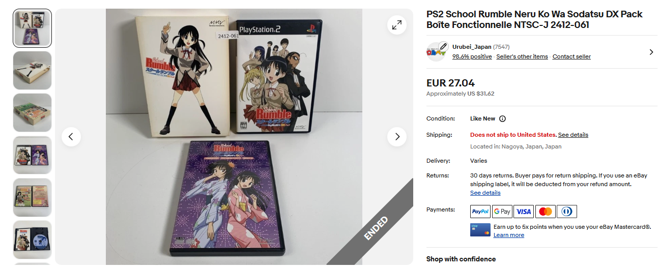 ウルベイ販売実績:自社商品PS2 School Rumble Neru Ko Wa Sodatsu DX Pack Boîte Fonctionnelle NTSC-J 2412-061 27.04EUR(ユーロ)