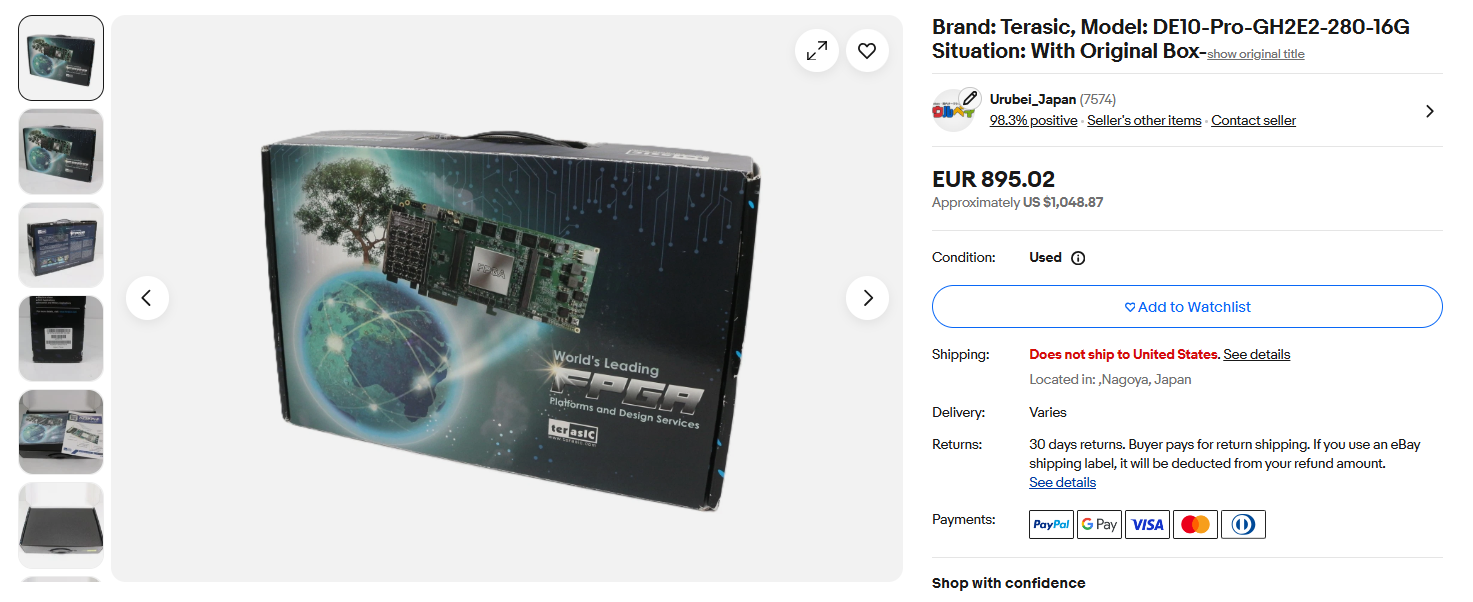 ウルベイ販売実績:Marca: Terasic, Modello: DE10-Pro-GH2E2-280-16G Situation: Con Originale Scatola 895.02EUR(ユーロ)