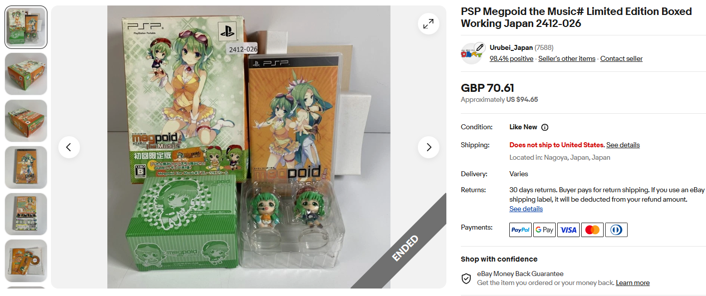 ウルベイ販売実績:自社商品PSP Megpoid the Music# Limited Edition Boxed Working Japan 2412-026 70.61GBP(ポンド)