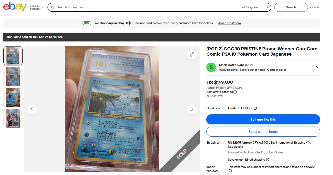 24-U0176 (POP 2) CGC 10 PRISTINE プロモ ウーパー コロコロコミック PSA 10 ポケモンカード 日本語 249.99ドル ebayで売れてます