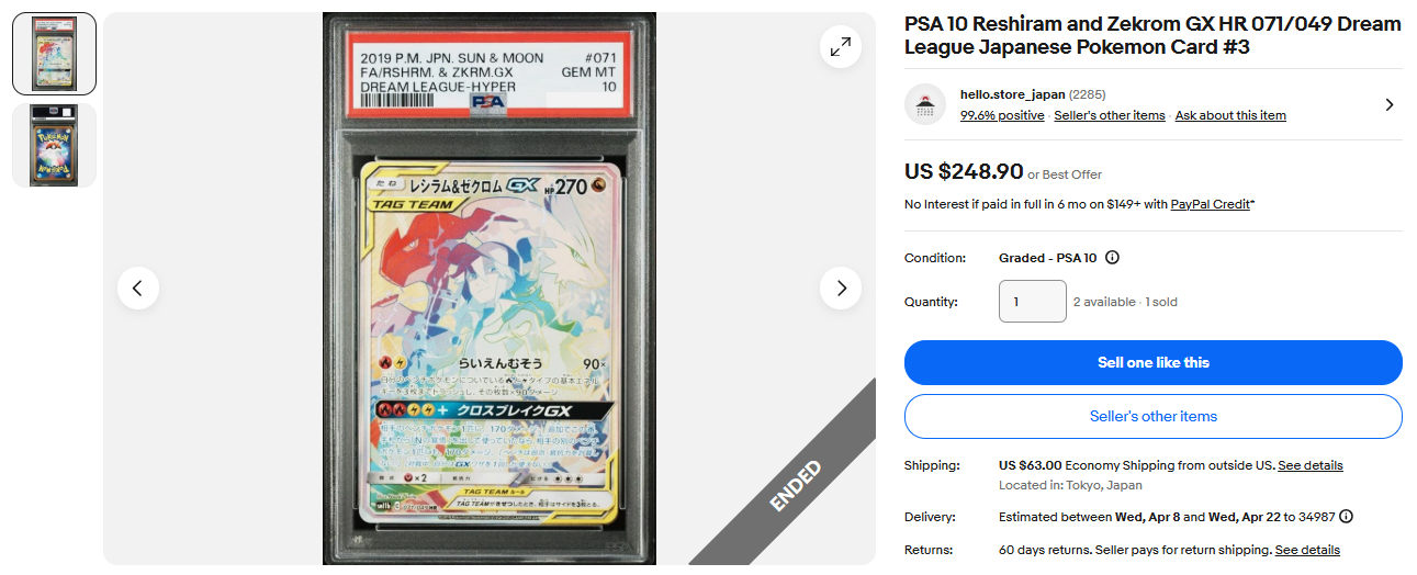 24-U0231 PSA 10 レシラム&ゼクロムGX HR 071/049 ドリームリーグ ポケモンカード #3 248.9ドル ebayで売れてます